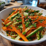 This vibrant Asian-inspired cucumber carrot salad is perfect as a light side dish, quick healthy lunch, or colorful addition to rice bowls and grilled meals. With its balance of sweet, salty, tangy, and slightly spicy flavors, every bite feels fresh, crunchy, and incredibly satisfying.