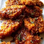 This baked crunchy hot honey chicken is my go-to when I want a crispy, sticky, spicy dinner without deep-frying. Tender chicken tenders get a cornflake-Parmesan crust, bake until golden, then get the warm-hot-honey glaze for a perfect sweet-heat finish. It’s fast enough for weeknights, dramatic enough for guests, and easier than you’d expect. If you enjoy quick oven recipes, I also like the flavor and speed of 30-minute oven-baked chicken thighs as another simple family dinner option.