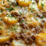 “Comfort in a pan: tender potatoes layered with savory beef and gooey cheese—our go-to for busy weeknights.”