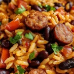 A quick and comforting one-pot meal with smoky sausage, tender rice, and creamy black beans, ready in about 35 minutes.