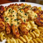 I still remember the first time I made this creamy, cheesy rotini with garlic Parmesan chicken — it was a rainy weeknight, and the whole kitchen smelled like garlic and butter within minutes. This dinner is rich without being fussy: tender pan-seared chicken on a bed of spiral pasta coated in a silky Parmesan cream sauce. It’s the kind of meal families ask for on repeat, and it comes together fast enough for weeknights. If you like a lush pasta that’s simple to execute, you’ll appreciate how this recipe balances comfort and speed, much like this creamy garlic Parmesan chicken pasta I often tweak for different dinners.