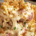 This dish combines three deli classics—shredded chicken, Black Forest ham, and Swiss cheese—into a creamy casserole topped with buttery Panko. It’s nostalgic but streamlined: no complicated folding or fussy assembly, just layers and a simple béchamel-style sauce that thickens quickly on the stove. Make it for holiday leftovers, Sunday family meals, or when you want something that feeds a crowd and stores well.