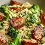 A quick and flavorful one-pan meal featuring chicken sausage, tender broccoli, and creamy orzo that’s perfect for weeknight dinners.