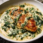 There’s something truly comforting about a plate of creamy spinach garlic chicken. It’s the kind of dish that feels both cozy and luxurious, inviting you to take that first bite filled with tender chicken, fresh spinach, and a velvety sauce. I first tried this recipe on a busy weeknight when I needed something quick yet satisfying. It soon became a family favorite, especially on hectic days when balancing work, family, and dinner seemed overwhelming. Whether you’re cooking for a romantic dinner, a family gathering, or just treating yourself after a long day, this dish perfectly balances flavor and ease.
