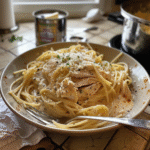 This creamy slow cooker dinner tastes like something you’d order at a cozy diner: tender chicken in a rich, buttery, Italian-seasoned sauce that coats every strand of pasta. It’s warm, peppery, and just tangy enough to keep you going back for “one more bite.”