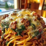 Before you start, here’s the workflow so you know what to expect: boil the spaghetti until al dente, brown and crumble the Italian sausage in a skillet, make a quick garlic-butter sauce in the same pan, wilt the spinach, then return the sausage and toss everything with the pasta. Finish by adding mozzarella and Parmesan, covering briefly until the cheese melts into the noodles.