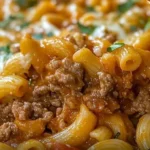 A hearty and nostalgic dish combining seasoned ground beef, tender elbow macaroni, and rich tomato sauce, perfect for busy weeknights.