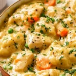 Simple Chicken and Dumplings with Biscuits is the kind of recipe that gives you maximum comfort with minimum fuss. It uses everyday pantry ingredients, comes together quickly, and gives you those nostalgic, thick-broth-and-dough dumplings without rolling out pastry. Make it when you want something warm and familiar — family dinners, potlucks, or a Sunday supper.