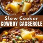 I grew up on one-pot dinners that fed a crowd and cleaned up in minutes, and this Slow Cooker Cowboy Casserole is exactly that kind of weeknight hero — a layered, hearty bake of browned beef, potatoes, beans, corn and a creamy mushroom base that simmers low and slow until everything melds. If you enjoy stick-to-your-ribs slow-cooker comfort like a slow cooker chicken and dumplings recipe, this casserole delivers the same hands-off ease with a Southwestern twist.