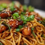 Before you start: you’ll brown coated chicken for texture, build the sauce in the same pan for maximum flavor, and then toss in cooked noodles so everything finishes together. Expect about 20–30 minutes active time: boil the noodles, pan-fry the cornstarch-dusted chicken until golden, sauté garlic and ginger, reduce the honey-soy mixture until glossy, then combine and garnish.